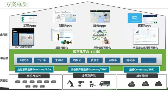 App平台层通过PTC Thingworx Mashup前端拖拽开发工具,通过简单拖拽拼凑,形成各业务组合App