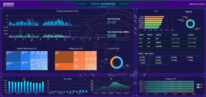 截至目前,广州西门子能源已完全部署了ThingWorx工业物联网的解决方案。通过ThingWorx的数据,使仪表盘视图的形式在大型数字屏幕上显示任何特定生产线的当前设置、性能、资产状态以及关键绩效指标。操作员只需查看屏幕即可清晰了解生产线的运行情况,评估有关因素,然后比较得出的数据与既定目标。