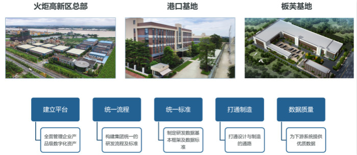 在PLM一期项目的规划里,火炬开发区生产基地,港口生产基地,板芙生产基地都纳入到系统的实施范围内,通过PLM项目全面管理企业产品级数字化资产,构建集团统一的研发流程及标准,制定研发数据基本框架及数据标准,并打通设计和下游制造的数据链路。