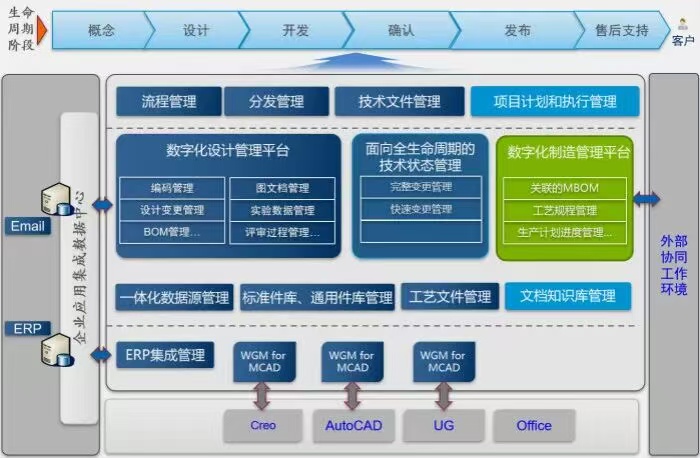 ● 通过PLM项目的实施,搭建起一个CAD/PLM/ERP的协同工作平台,实现真正的权限控制范围内的产品文件的方便创建、共享,快速地查询研发技术资料
